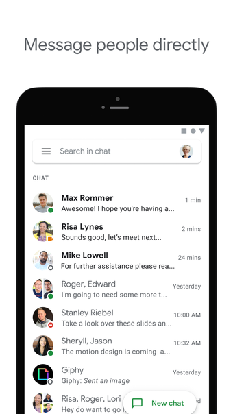 تعمل Google Chat على نظام التشغيل iOS 12.1.2 والإصدارات الأحدث. الإصدار الحالي من البرنامج هو 1.0.178 ، ويمكنك الحصول عليه باللغات الألمانية والروسية والهندية.